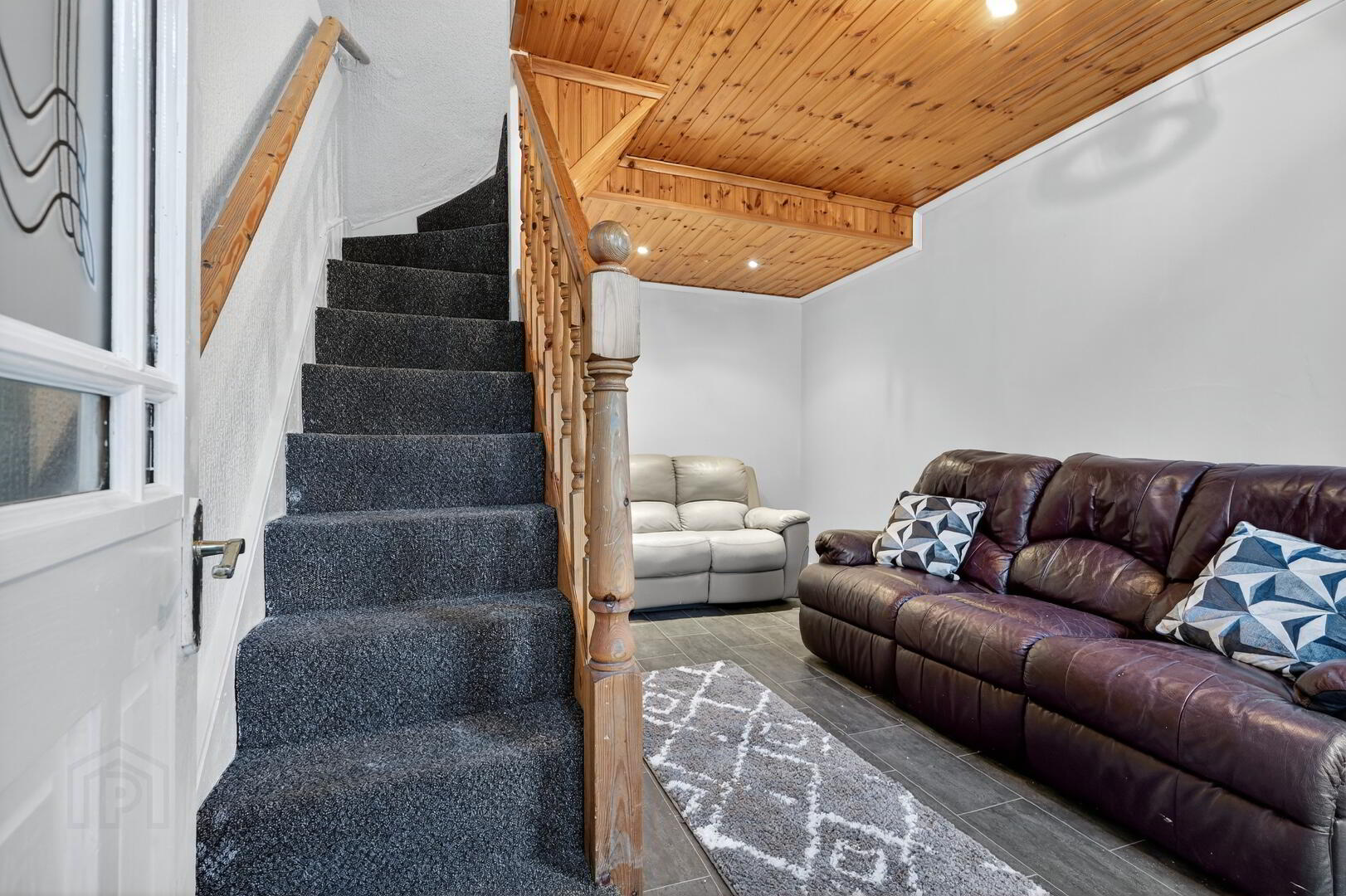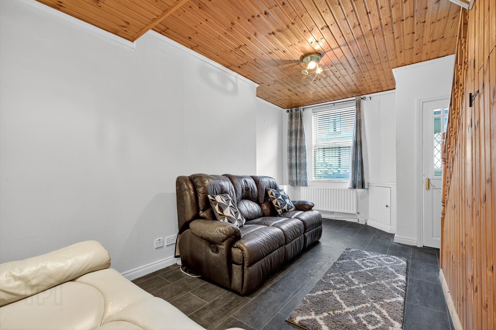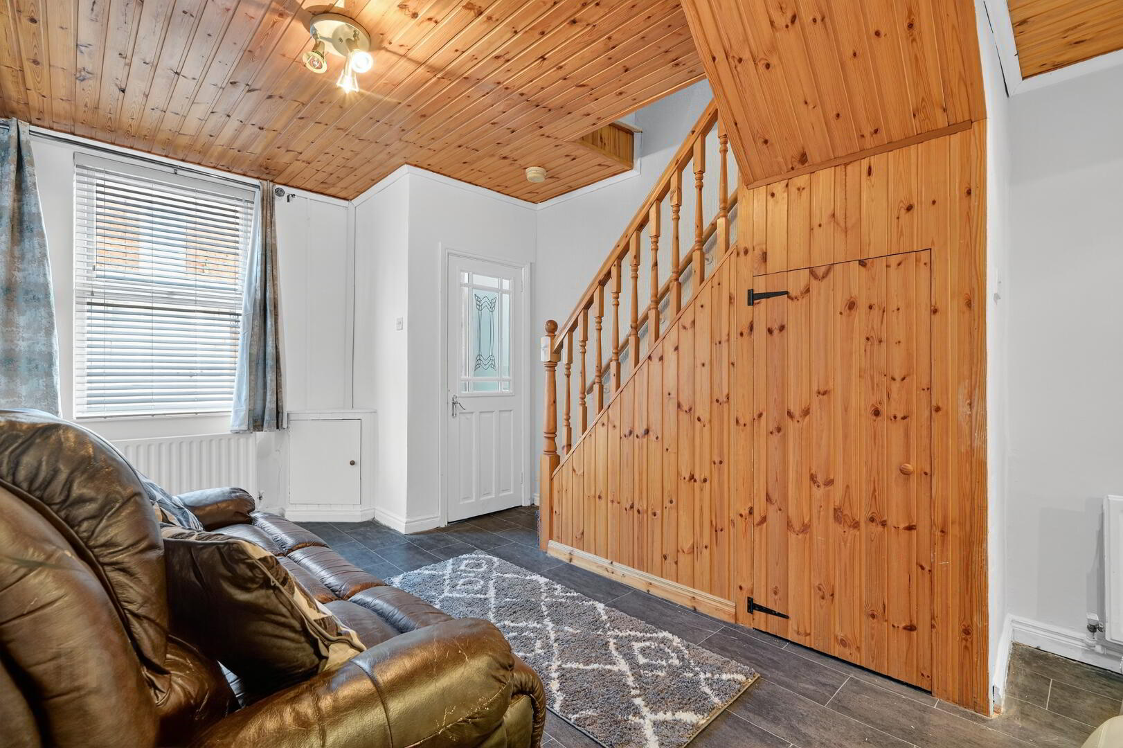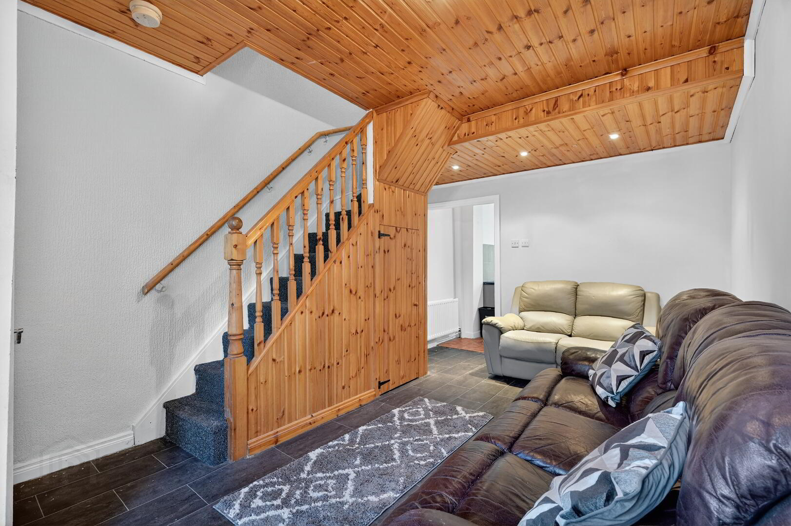 Through Lounge with laminated flooring. Understair clockroom