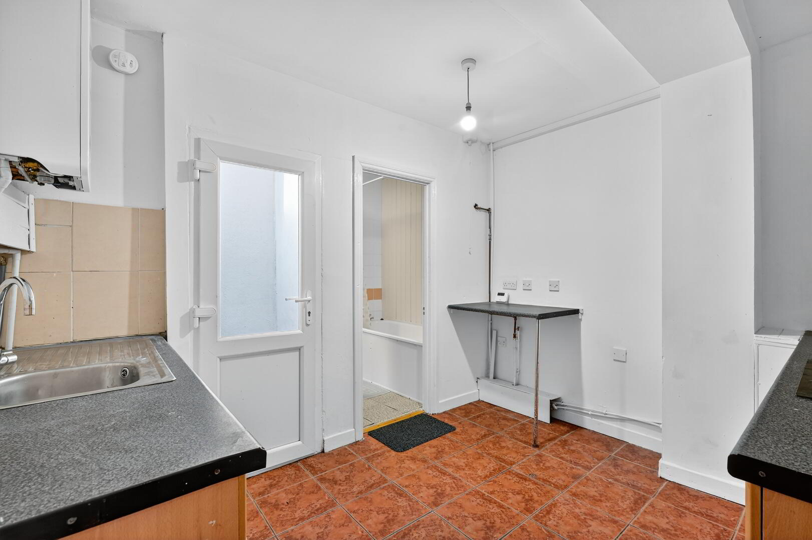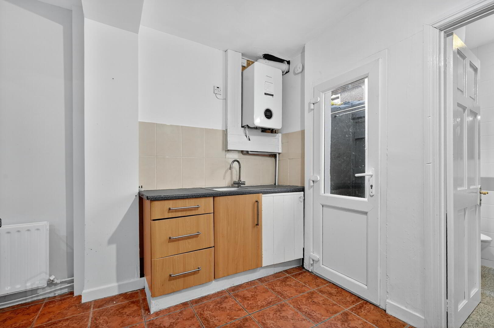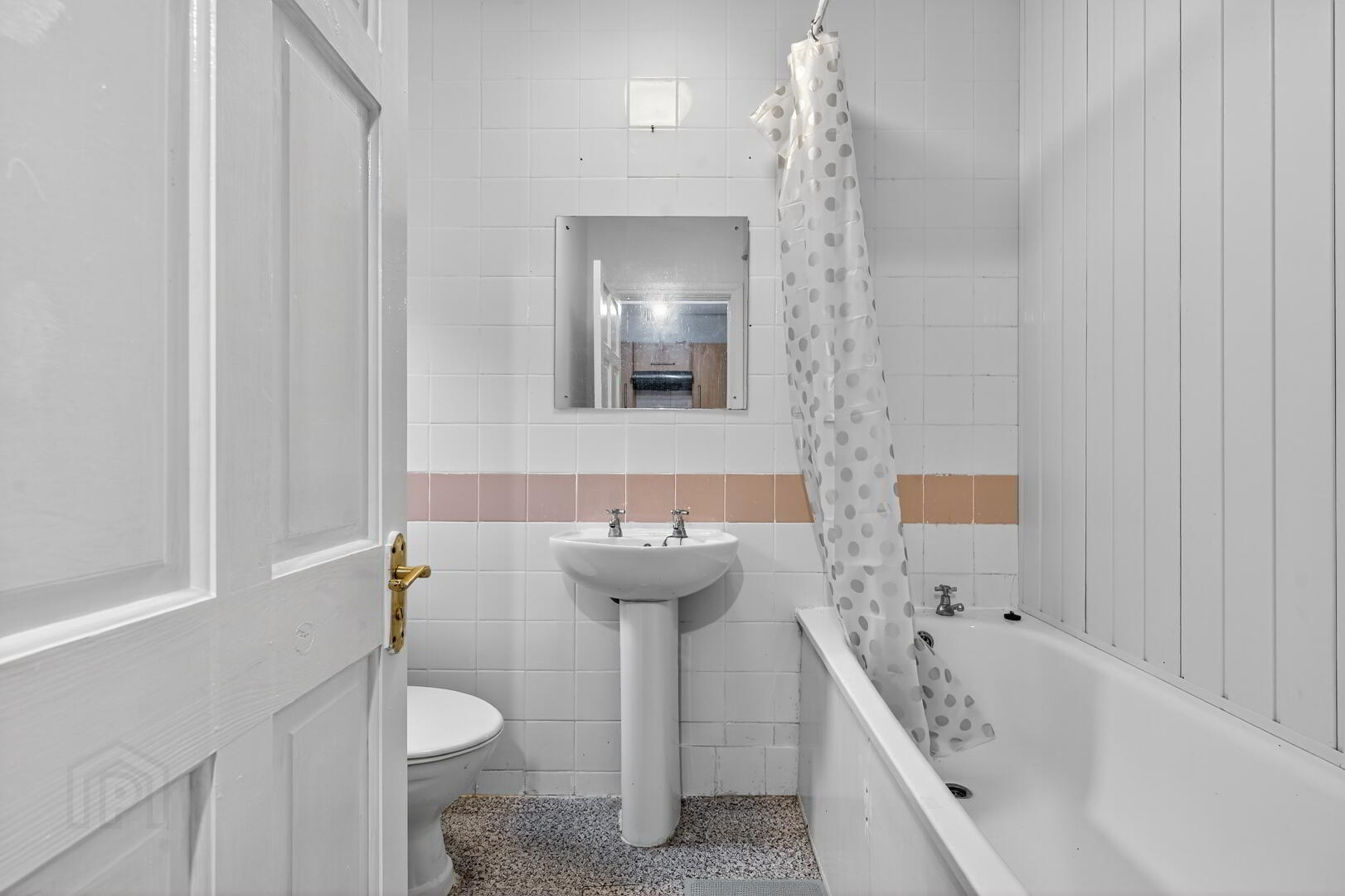 * Downstairs white Bathroom suite with shower