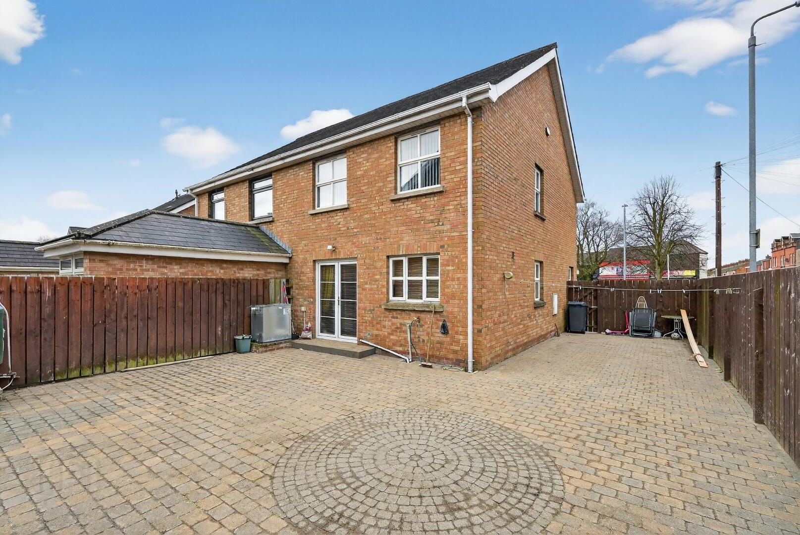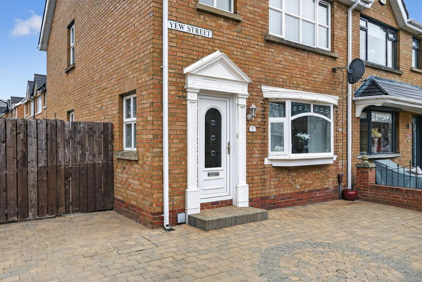 Front Garden: Spacious paved garden enclosed by red-brick wall joining unto the side and rear garden