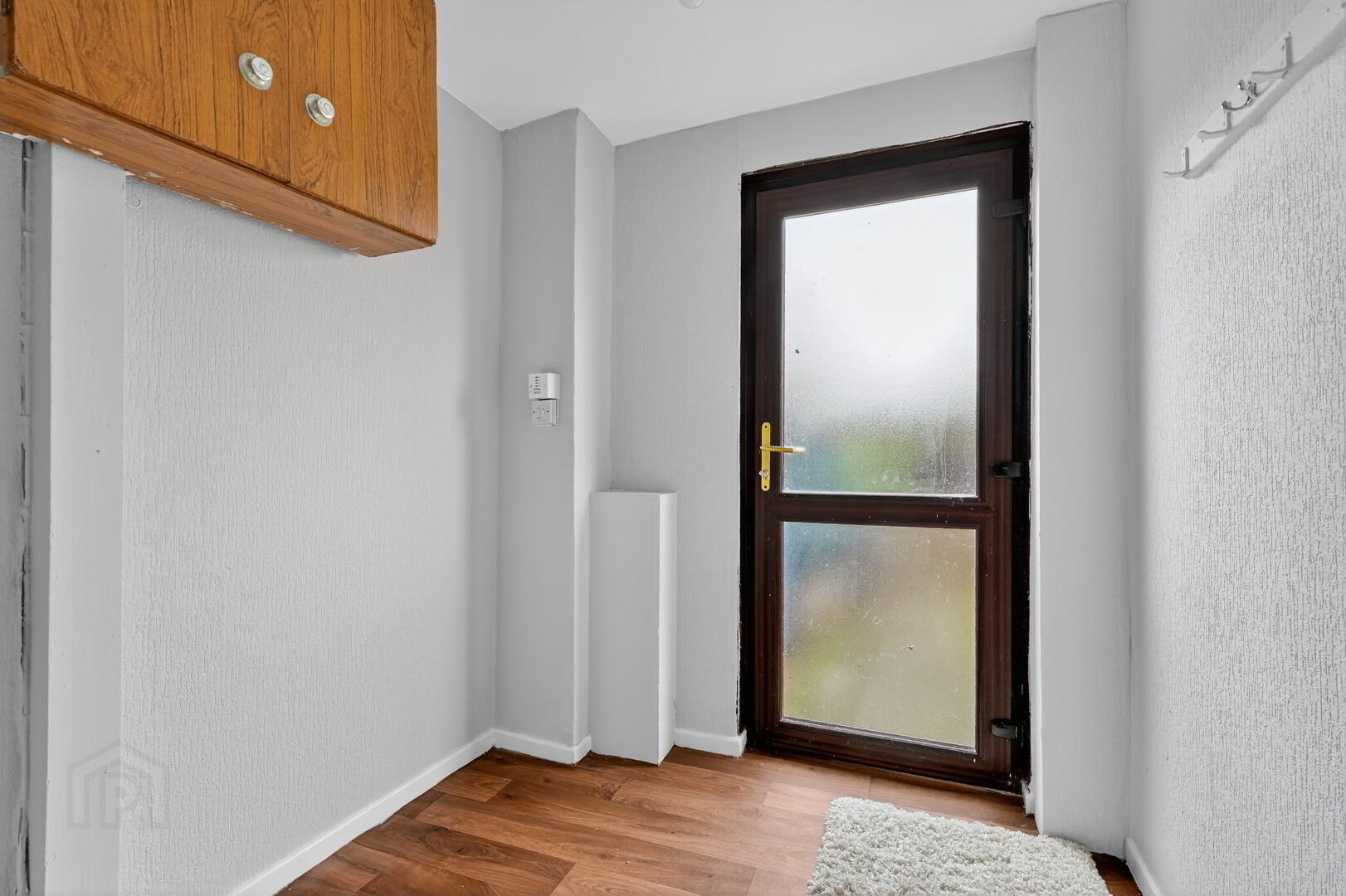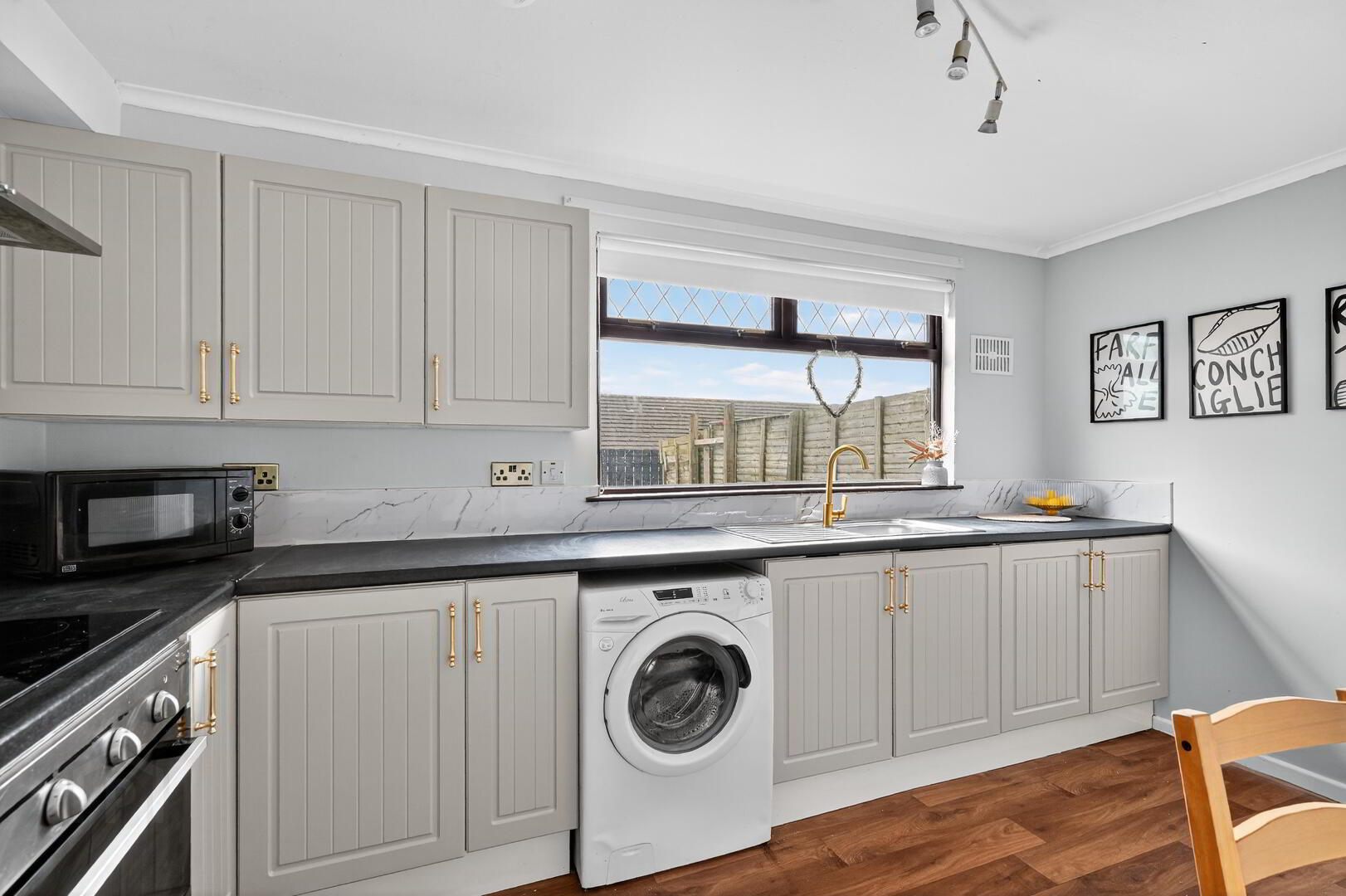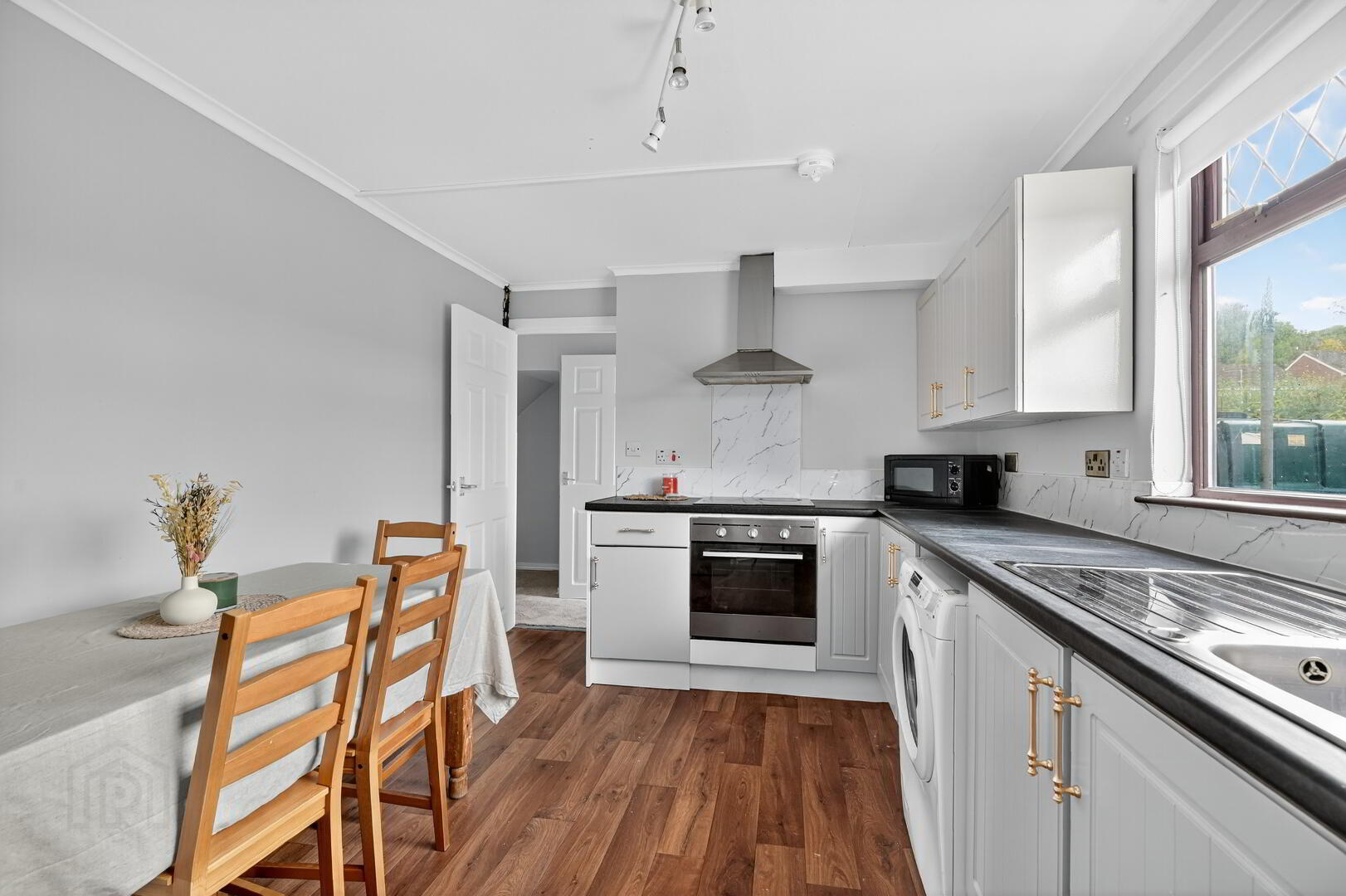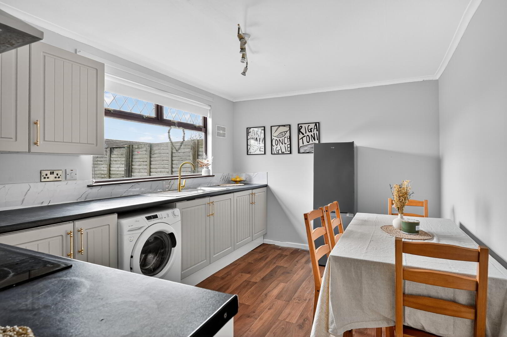 An extensive range of high and low level units, formica worktops, built in oven and ceramic hob, stainless steel splashback, bowl and a half sink unit, plumbed for washing machine, panelled radiator. Infomal dining area